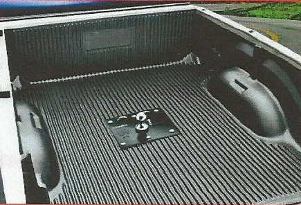 The image to the right is what the above bed gooseneck hitch looks like once installed on a truck bed. Gooseneck hitch install kits can be broken into two mounting designs:
